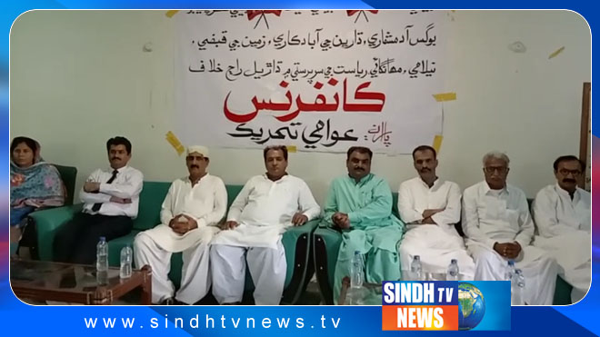 دادو ۾ سنڌ جي زمينن جي نيلامي، پاڻي تي ڌاڙن، وسيلن جي ڦرلٽ، ڌارين جي يلغار، ڌاڙيل راڄ ۽ مهانگائي خلاف عوامي تحريڪ پاران ڪانفرنس ڪوٺائي وئي .