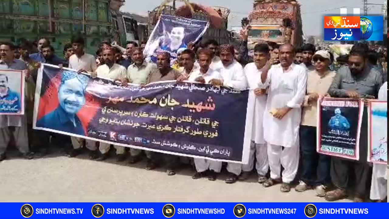 سنڌ جي مختلف شهرن ۾ صحافي جان محمد مهر جي قاتلن جي گرفتاري لاءِ احتجاج