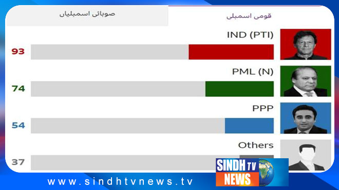 هن وقت تائين آيل غير حتمي ۽ غير سرلاري نتيجن موجب قومي اسيمبليءَ ۾ پي ٽي آءِ حامي آزاد اميدوار سڀني کان اڳرا آهن.