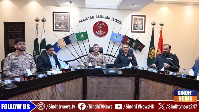ڊي جي رينجرز سنڌ ميجر جنرل محمد شمريز ۽ آءِ جي سنڌ جي صدارت هيٺ پاڪستان رينجرز هيڊ ڪوارٽرز ۾ سيڪيورٽي اجلاس ٿيو.